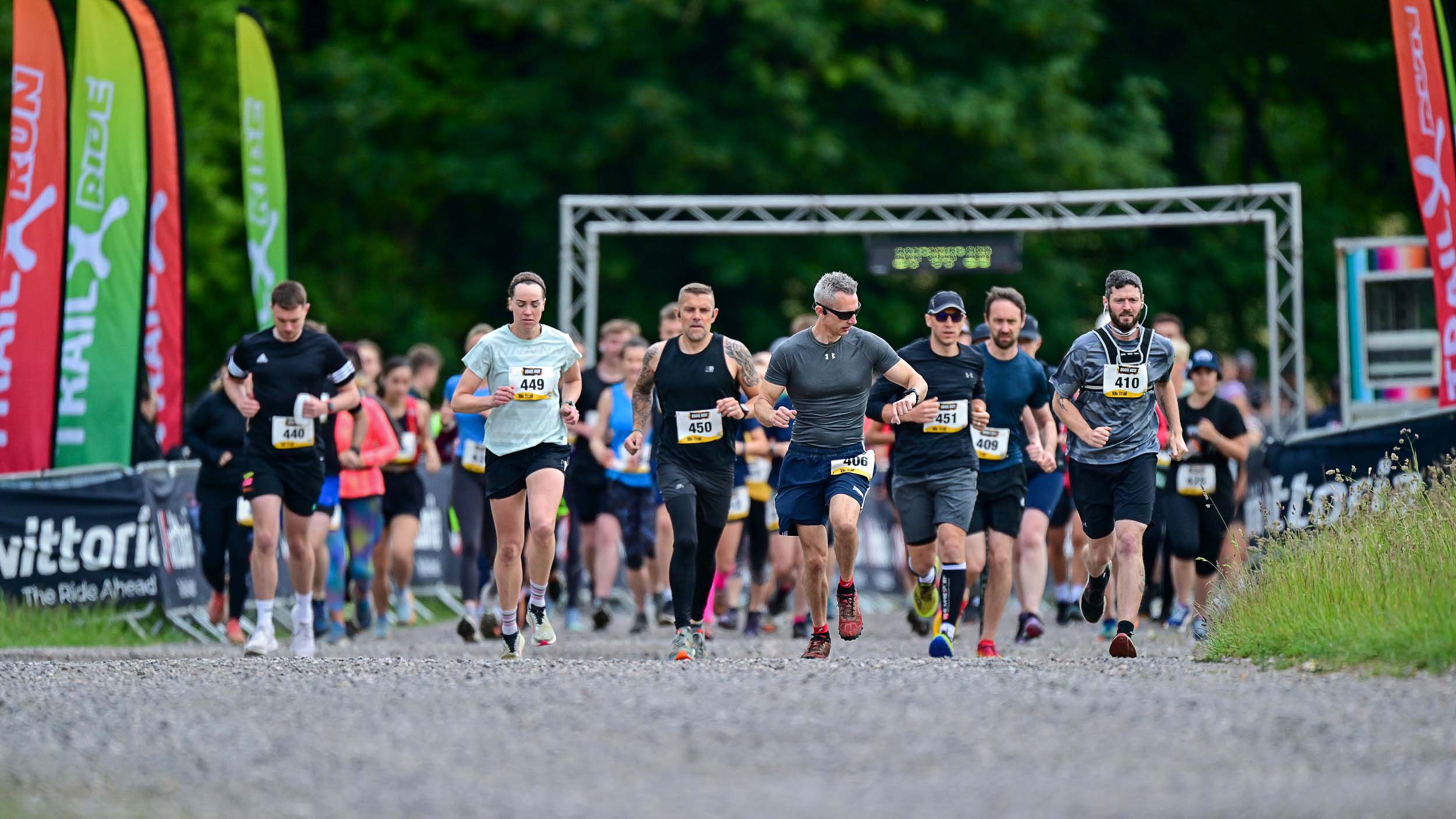 Both race distances take you across diverse terrain using gravel tracks, grassy paths, and woodland trails.